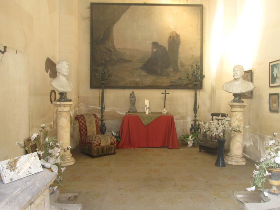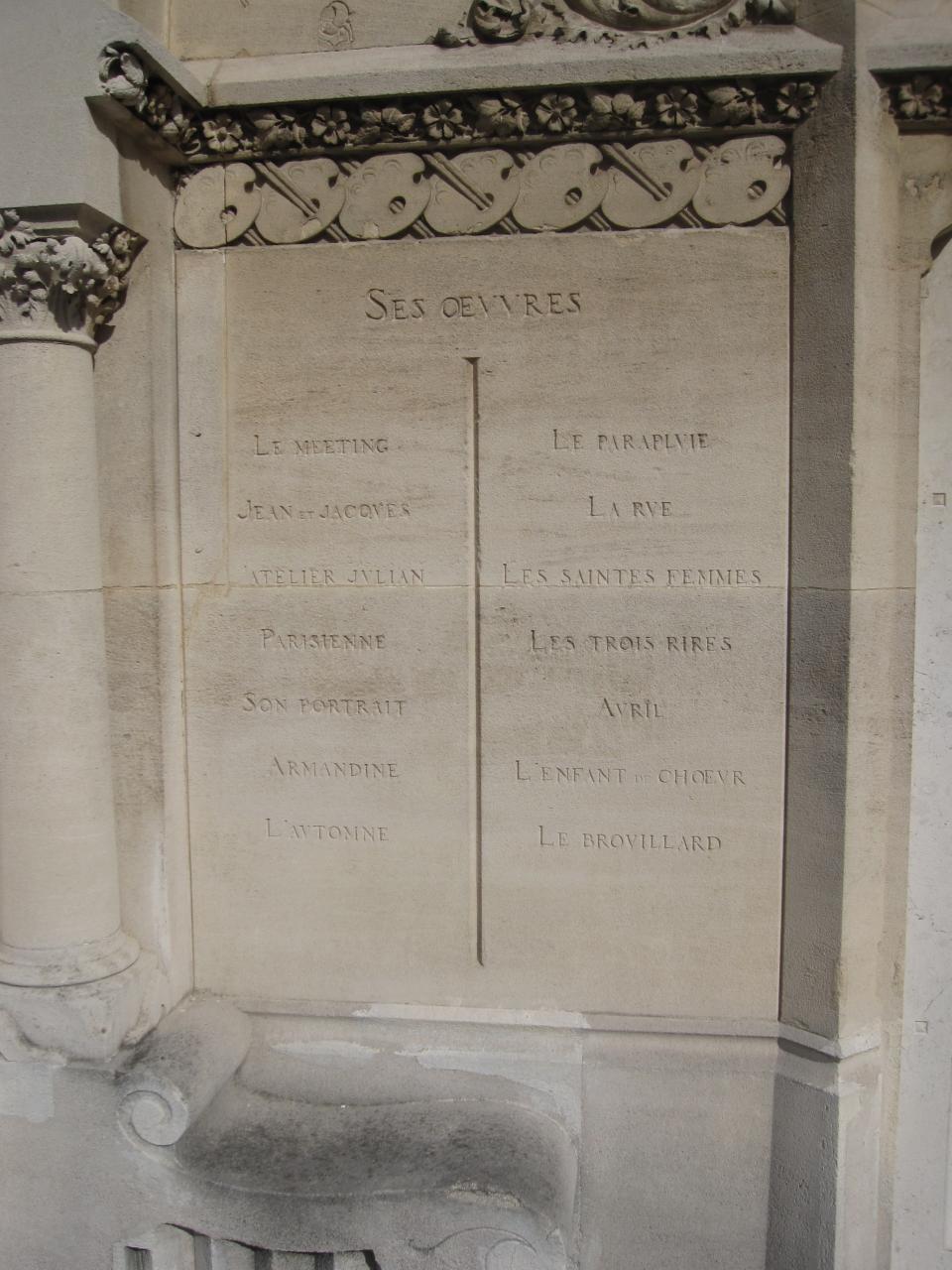 Bashkirtseva Tomb. The titles of Baskirtseva’s paintings are inscribed on an exterior wall of the tomb.