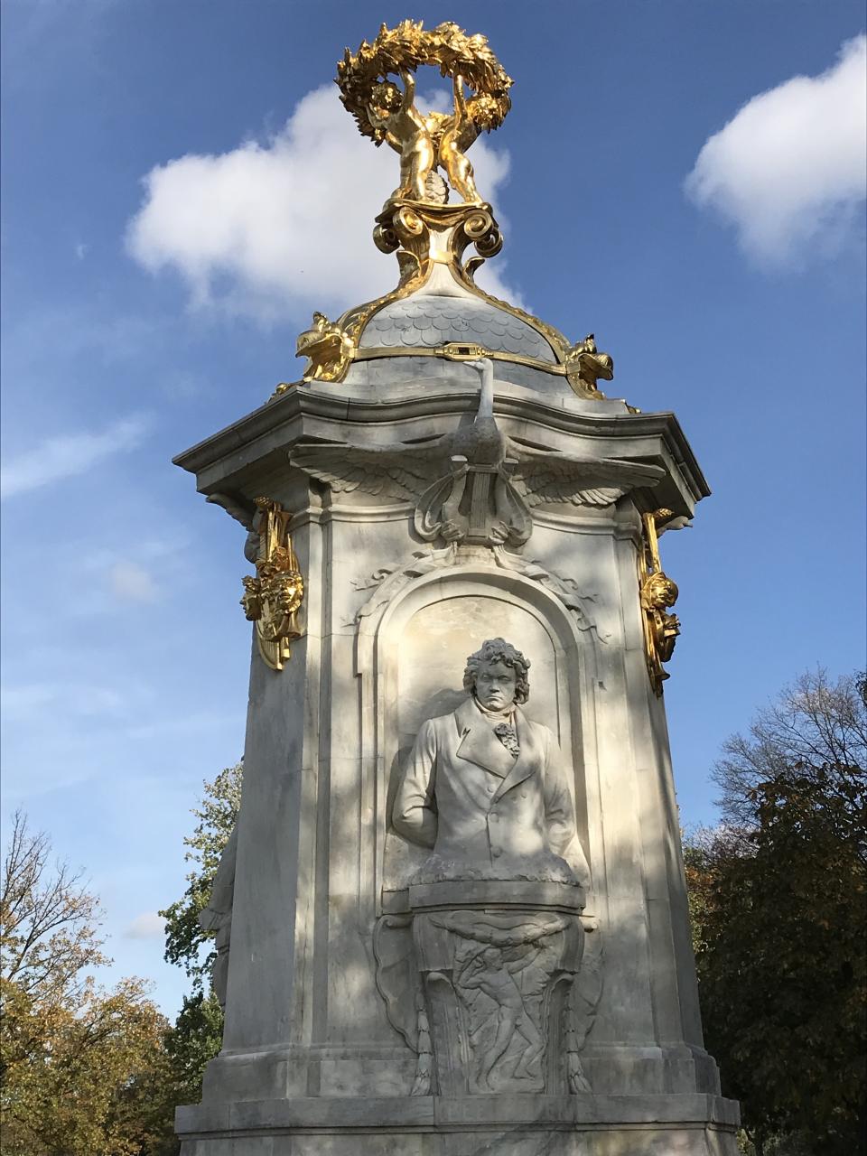 “Klinger played a highly publicized role in shaping public perception of Beethoven through the exhibition of his Beethoven Monument at the Vienna Secession’s fourteenth exhibition in 1902. That elaborate monument prompted the critic Ladjos Hevesi to compare it to Phidias’s statue of Zeus at Olympus and to describe it as ‘a true “Agalma”, the simulacrum of a modern god.’ It quickly became the subject of numerous articles and books, which made it the most well known contemporary work of art in Europe. In one study, an art historian attributed Klinger’s inspiration to Klein’s life mask [of Beethoven], on which Klinger based the marble face, and described the mask as ‘one of the very rare cases that a work of nature, recorded mechanically, has the value and impact of a consummate work of art.’ Although Klinger remained the foremost representative of German art for the broad public at the time of his death in 1920, the life mask realism and Gesamtkunstwerk (total work of art) spectacle of his Beethoven Monument had become kitsch for supporters of modernist art. Adolph Behne wrote that ‘as long as Max Klinger remains in all histories of art, I prefer the history of kitsch.’ In an article following the artist’s death, Julius Meier-Graefe, who had led criticism of Klinger during the century’s first decade, called him a ‘virtuoso of the trivial’ and wondered why Klinger did not hide a mechanism in the monument’s base that would make Beethoven’s eyes roll and the eagle’s wings flap. Commenting on its status in 1920, he advised, ‘Put the bird away, end it. It belongs to the military things that are demanded by the Allies. Otherwise don’t be surprised if young Bolshevists smash the last vestige of your middle-class way of life to bits.’”