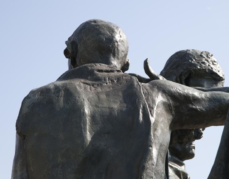 In an anticipation of cinematic motion (a decade away), viewers must circumambulate the Burghers in order to see it all.