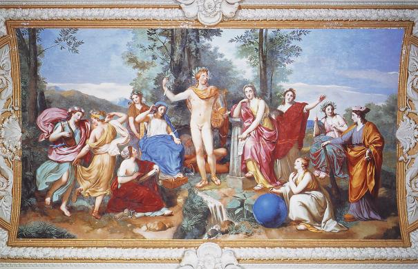 “The most obvious source of inspiration for Mengs was the art, and especially the painting, of Herculaneum and Pompeii. Having been so recently unearthed, these would have held a high degree of interest at the time, and the memory of them would no doubt have been fresh in Mengs’s mind. Indeed, [Mengs’s biographer, G.-N.] d’Azara states quite specifically that in the Albani ceiling Mengs had put to use all that he had learned from these ancient frescoes on his trip to Naples the previous year. Certain of the individual figures in the Parnassus do in fact seem to have been based, albeit in a rather free manner, upon various Herculanean paintings to which, even without presupposing sketches made after the originals, Mengs would have had easy reference via the engravings in the first two volumes of Le pitture antiche d’Ercolano [The Antique Paintings of Herculaneum] published in Naples at the behest of the King of the Two Sicilies, the future Charles III of Spain, in 1757 and 1760….The Parnassus…is among the earliest examples in Neoclassical painting in which we find such extended evidence of the use of figures derived from the ancient paintings of Herculaneum. Yet it will also be obvious that Mengs has in each case transformed his ancient prototype into a type that is distinctly his own.”